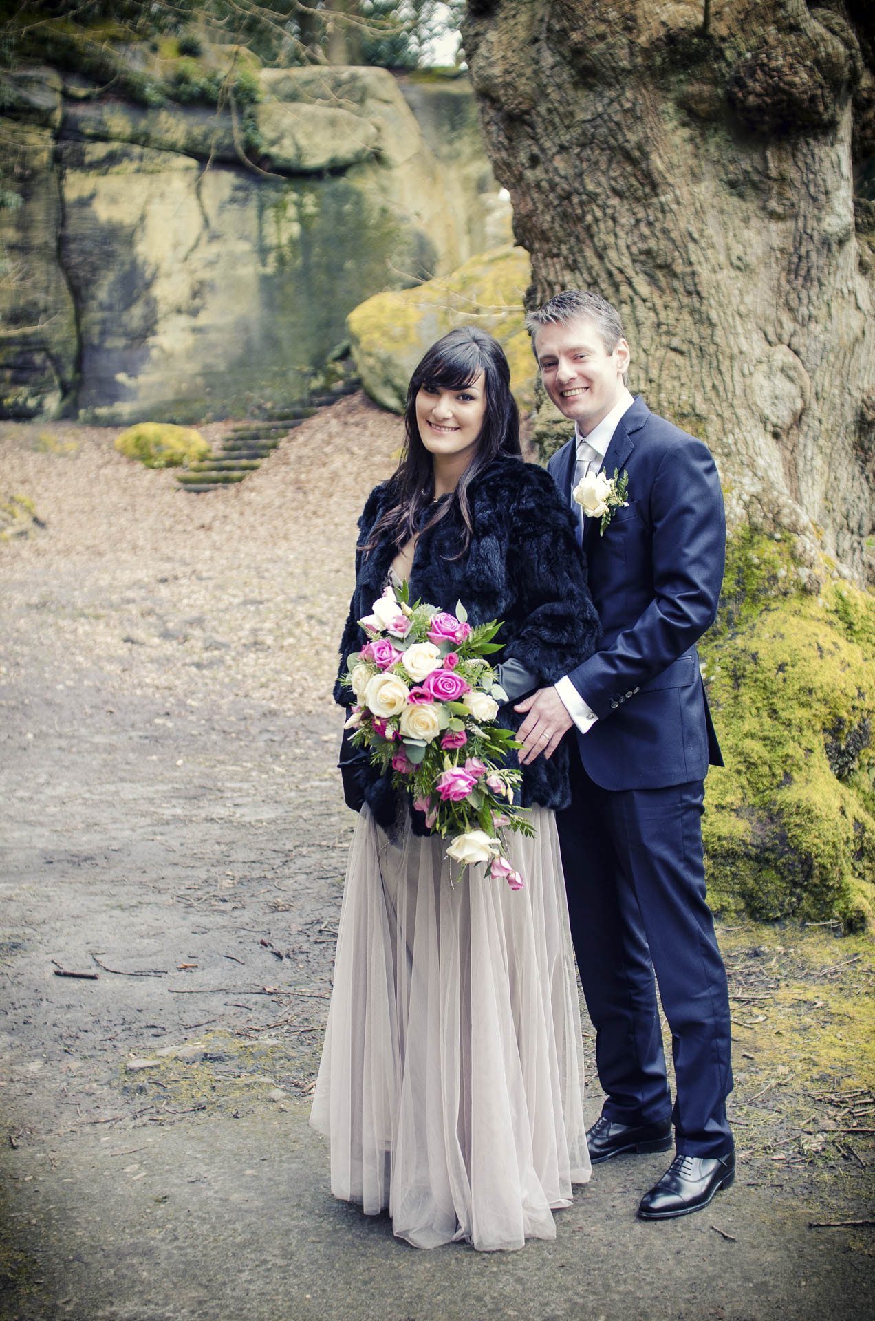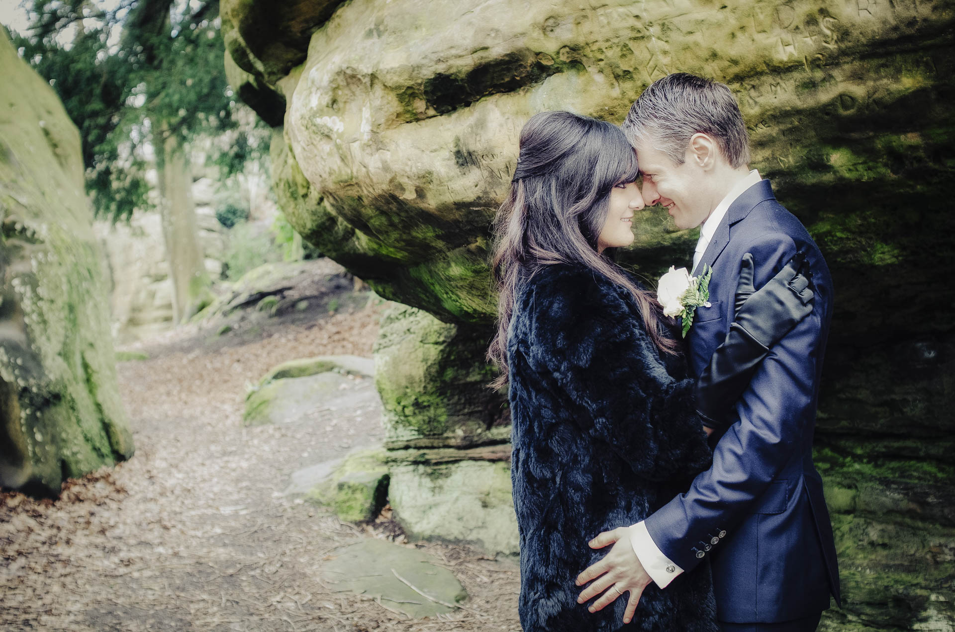 Przyjęcie weselne odbyło się w High Rocks, niedaleko Tunbridge Wells — miejscu o niezwykłej atmosferze, znanym z imponujących formacji piaskowcowych, drewnianych mostków i leśnych ścieżek otaczających cały teren. To przestrzeń, która od pierwszego kroku robi wrażenie swoją naturalną surowością i spokojem. Monumentalne skały, objęte ochroną geologiczną, tworzą tam scenerię niemal jak z innego świata — idealną dla par, które chcą celebrować swój dzień w wyjątkowym, ale nienachalnym stylu.