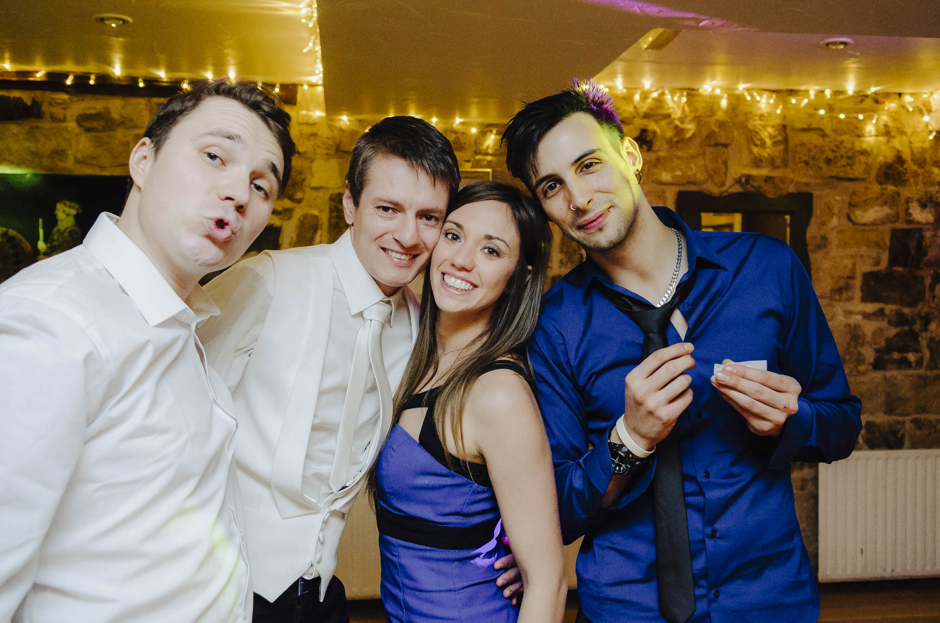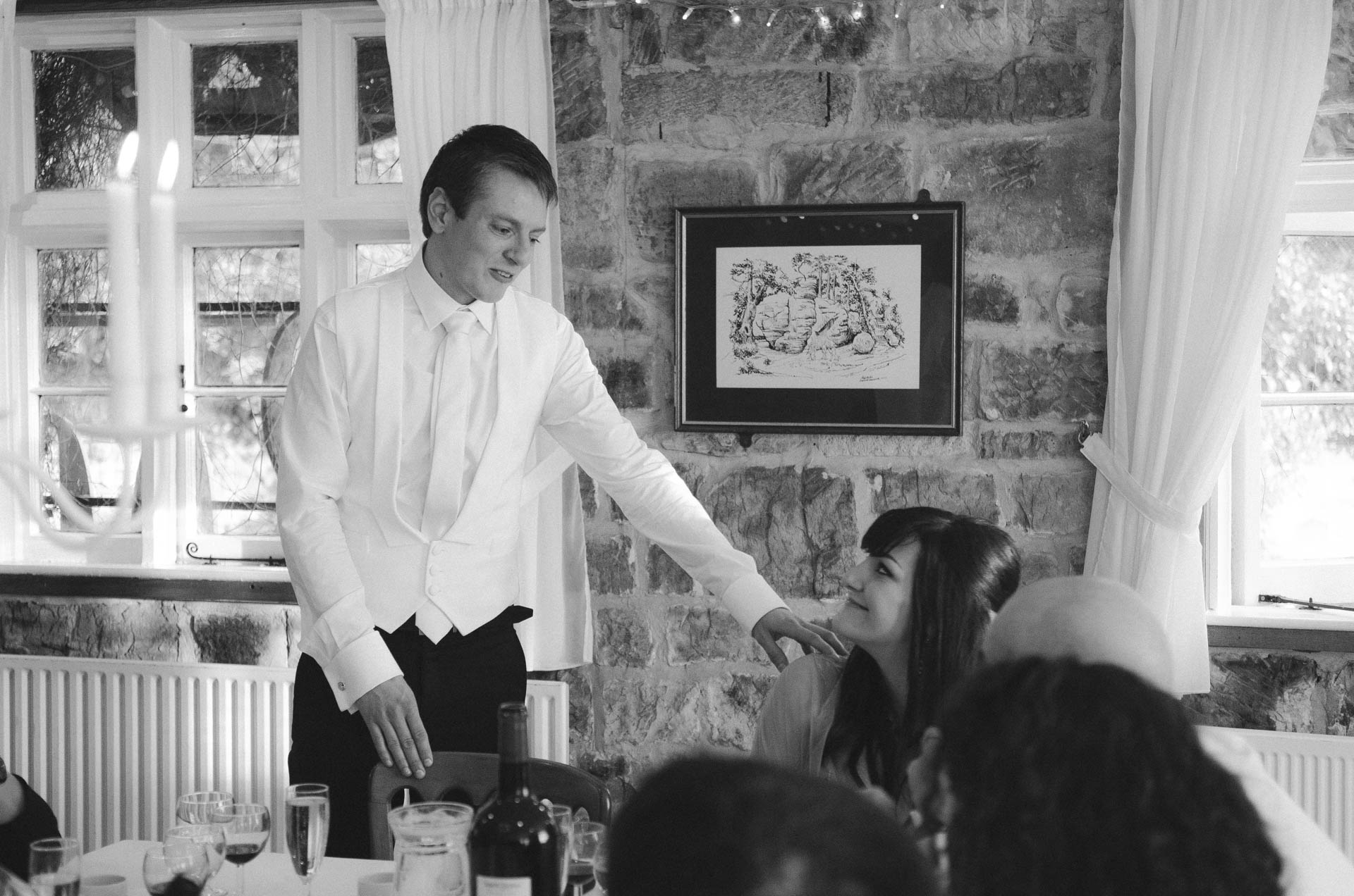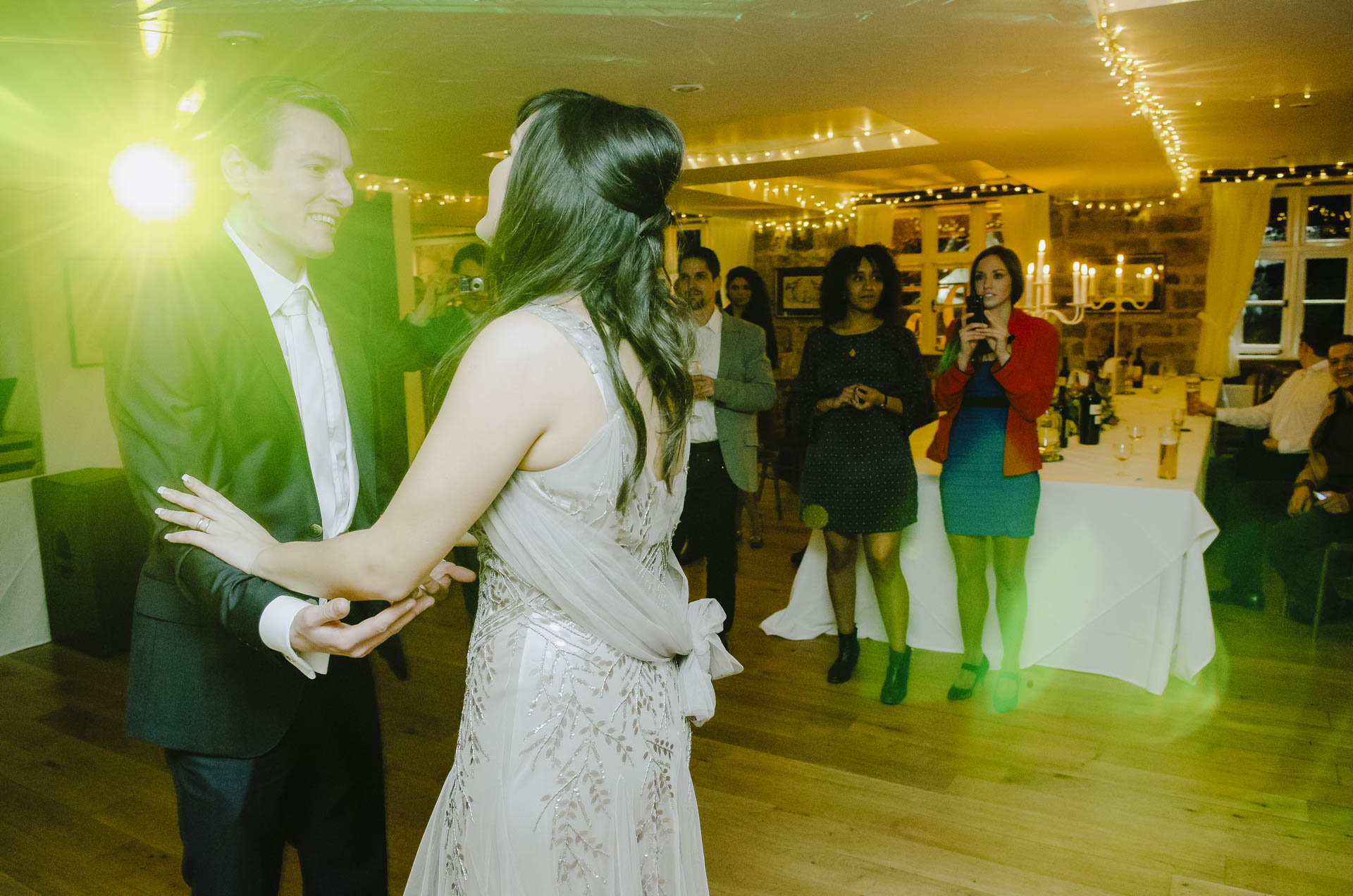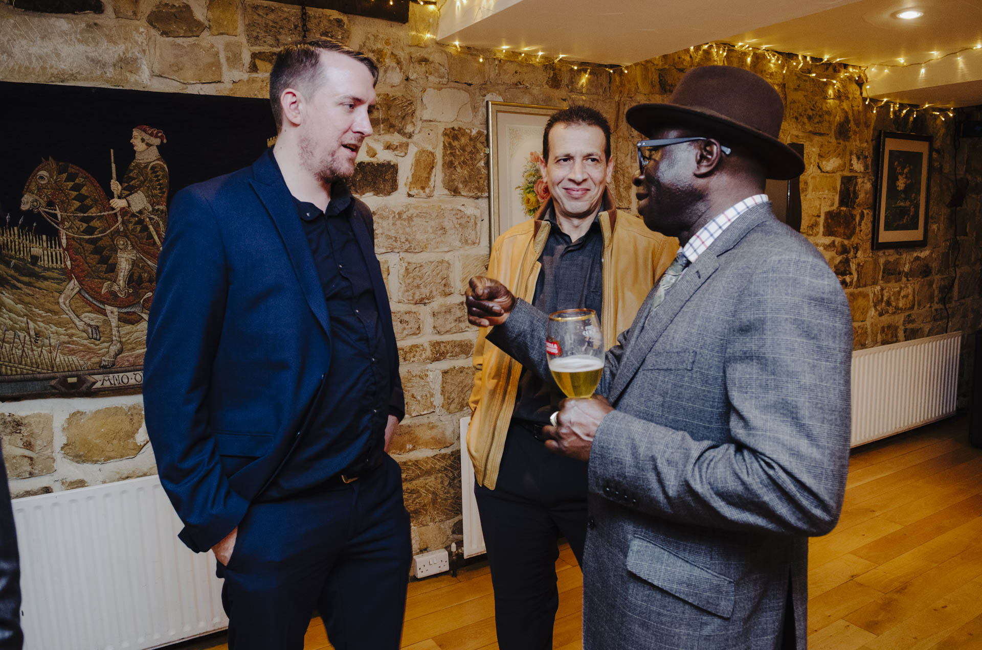 Kiedy po ceremonii w Londynie Diana i Cleiton znaleźli się w High Rocks, kontrast tych dwóch miejsc stał się widoczny od razu. Sala, w której odbywało się przyjęcie, utrzymana była w tradycyjnym, brytyjskim stylu: z gustownymi ceglastymi ścianami, ciepłym światłem i charakterem, który od razu wprowadzał w bardziej rodzinny, swobodny nastrój. W połączeniu z naturalnym krajobrazem wokół tworzyła idealną przestrzeń dla spokojnej, intymnej celebracji — pełnej rozmów, wzruszeń i śmiechu.