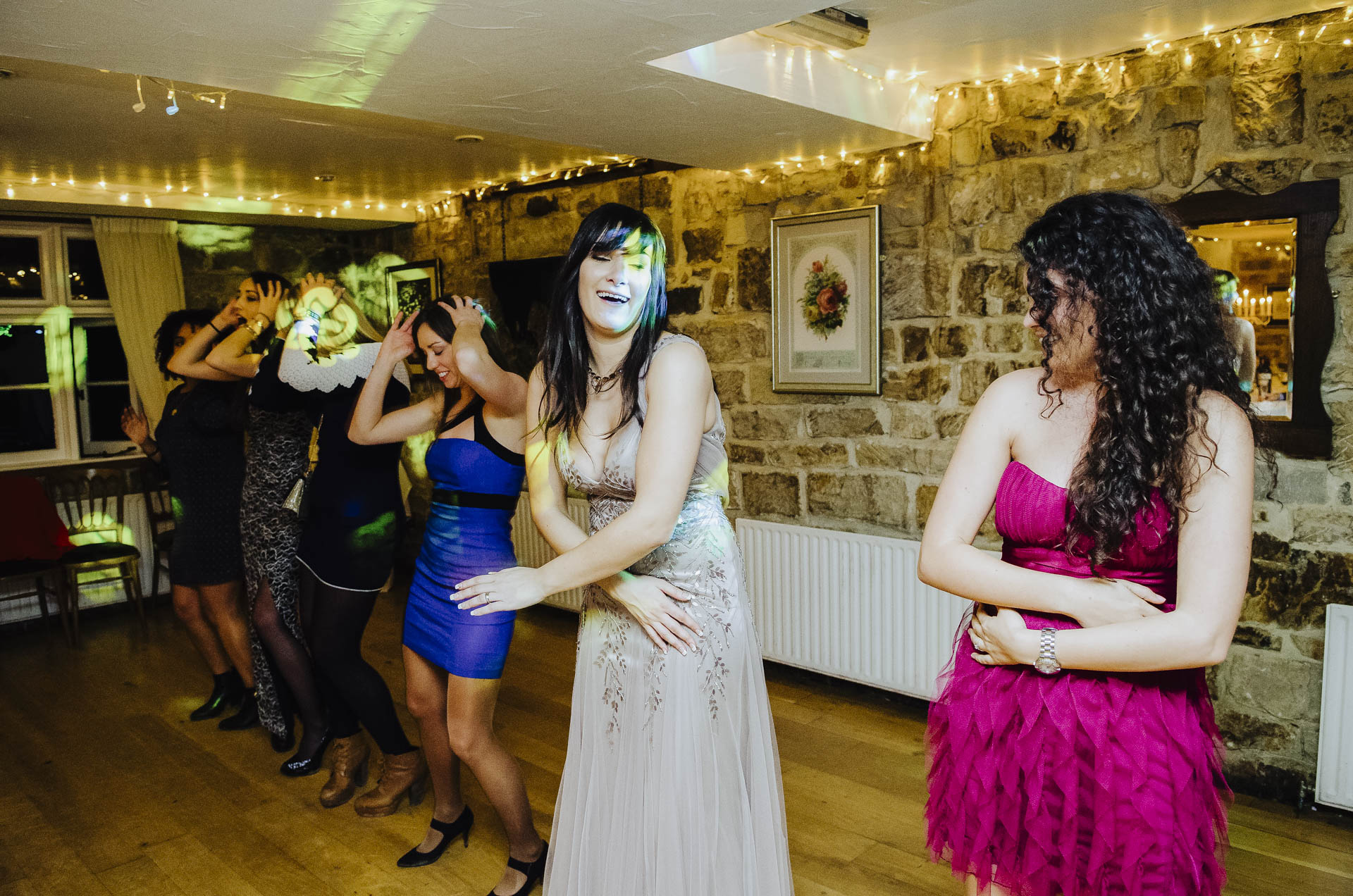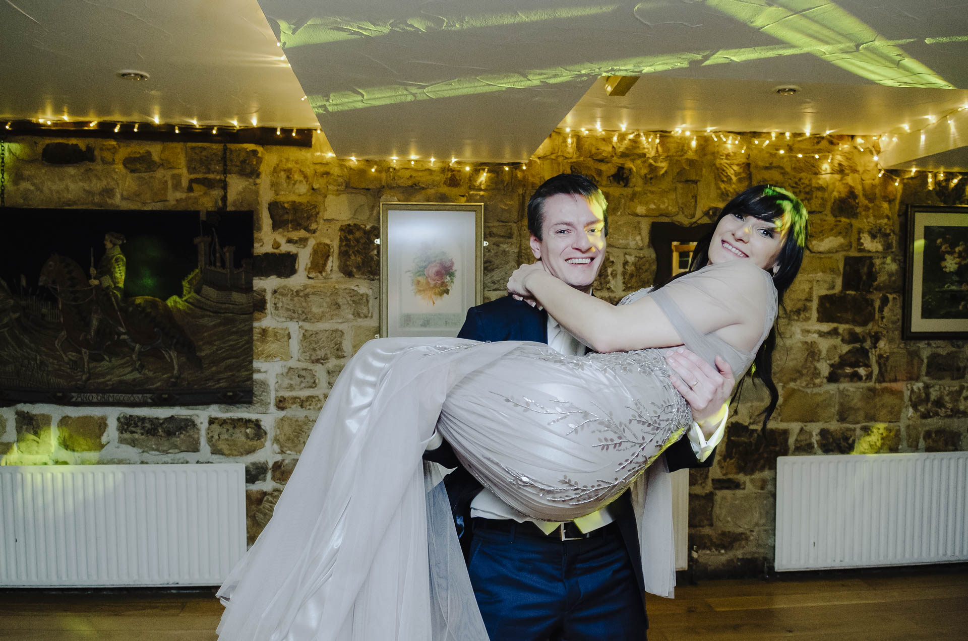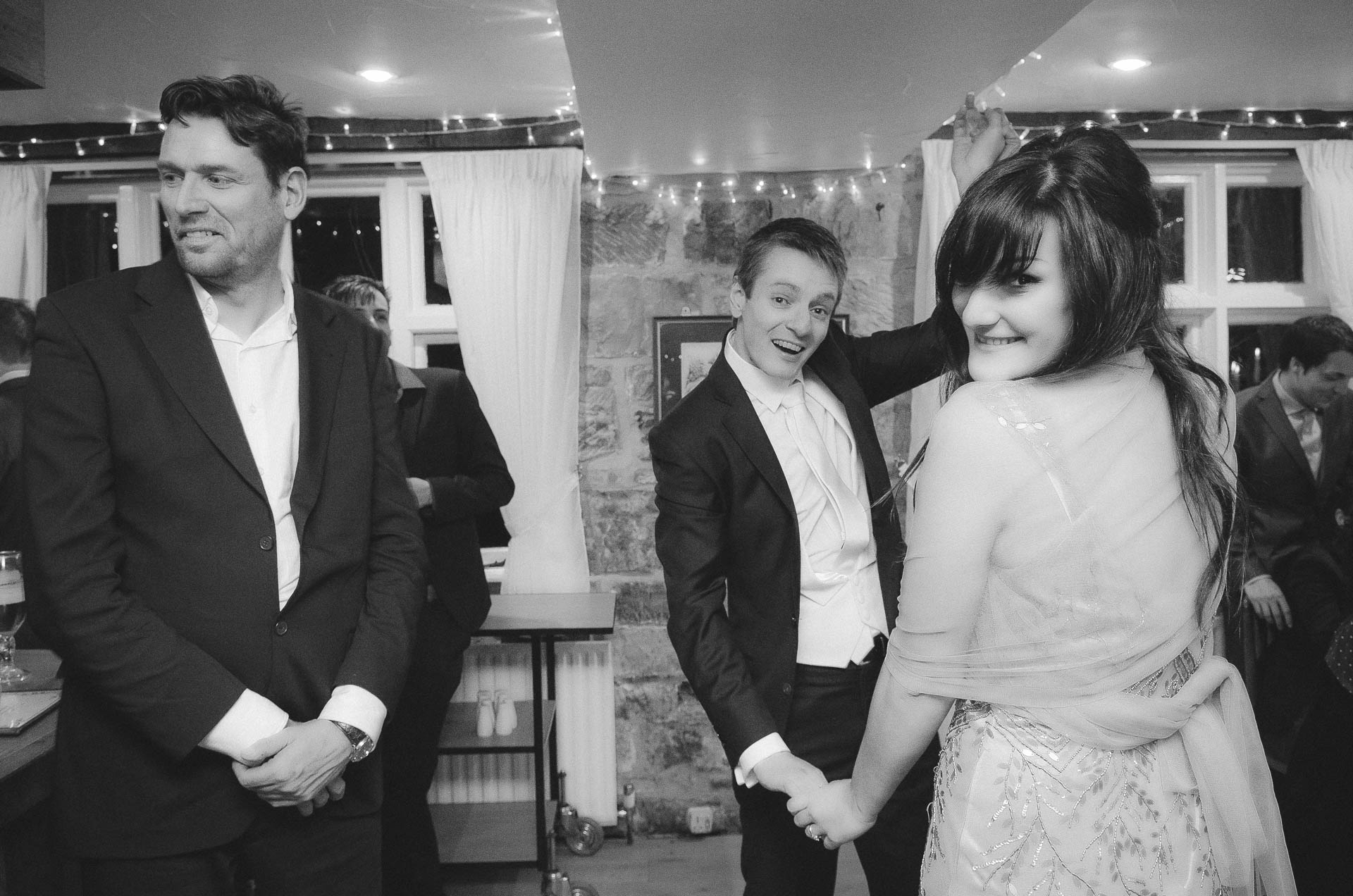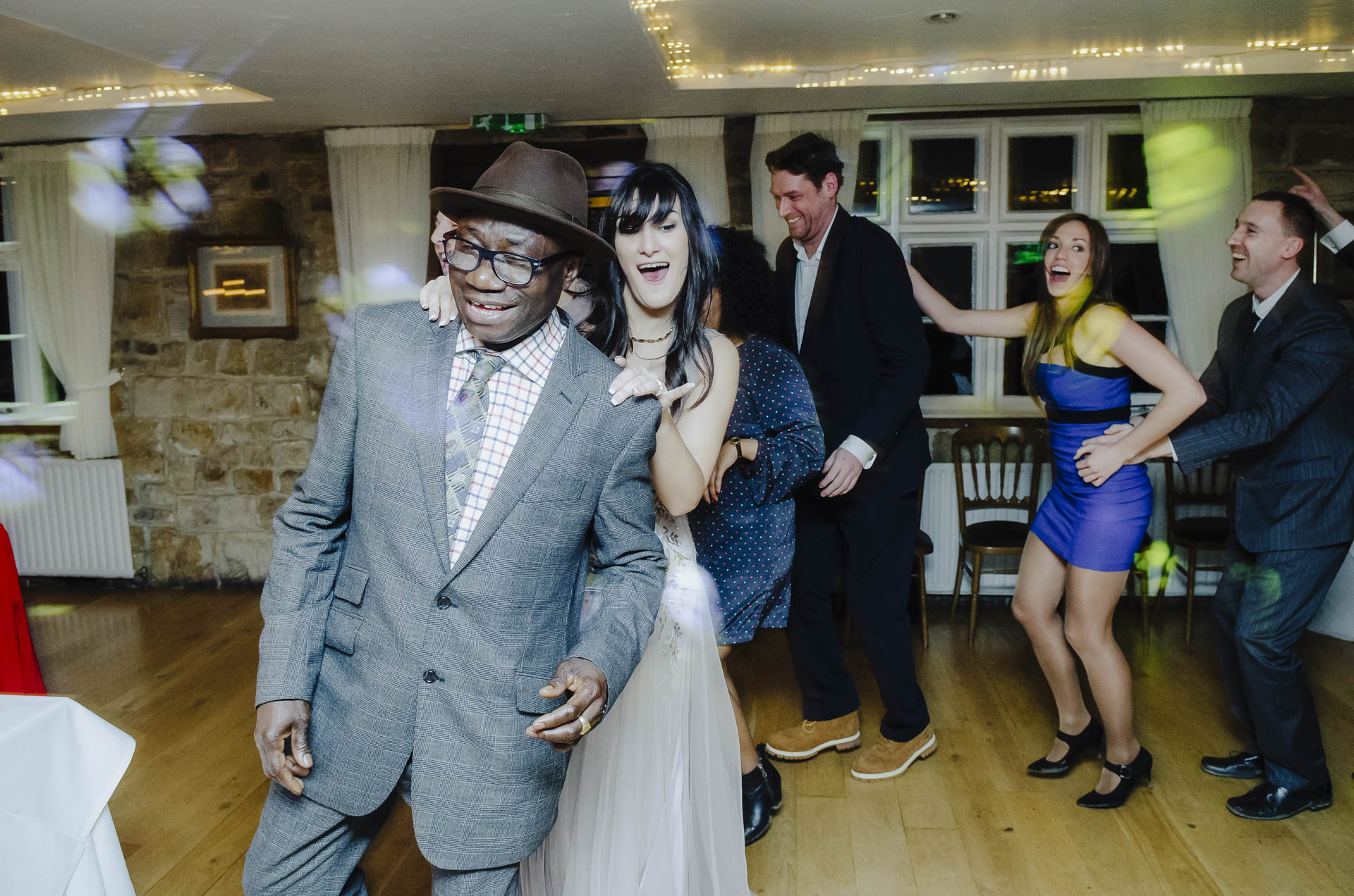 Kiedy po ceremonii w Londynie Diana i Cleiton znaleźli się w High Rocks, kontrast tych dwóch miejsc stał się widoczny od razu. Sala, w której odbywało się przyjęcie, utrzymana była w tradycyjnym, brytyjskim stylu: z gustownymi ceglastymi ścianami, ciepłym światłem i charakterem, który od razu wprowadzał w bardziej rodzinny, swobodny nastrój. W połączeniu z naturalnym krajobrazem wokół tworzyła idealną przestrzeń dla spokojnej, intymnej celebracji — pełnej rozmów, wzruszeń i śmiechu.